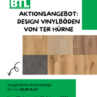 Sie wünschen sich einen neuen Boden, der gut aussieht, alltagstauglich ist und sich angenehm anfühlt? Dann sind die Design-Vinylböden von ter Hürne genau das Richtige – und ausgewählte Dekore jetzt sogar zum Aktionspreis von 28,99 €/m² bei BTL in Lengerich erhältlich.